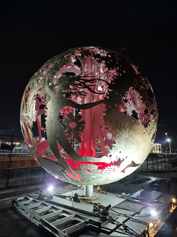 直径3.5メートルの巨大な球体は、その形状が非常に特殊なため、細心の注意を払いながら、無事に輸送することができました。