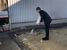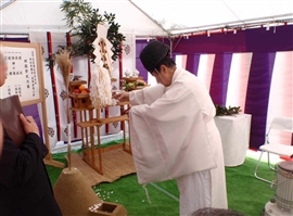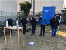 1/9午前にミサワホーム様立会いのもと建物の建設にあたり、その土地を領有する神々に無事を祈り、土地の平安堅固を授けて頂き、保障していただくため、また工事の安全と無事を祈りお願い致しました。