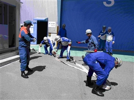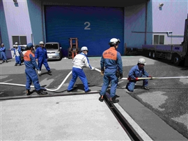 倉庫火災を想定した消火訓練を行いました。