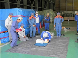 トラックでの事故・倉庫での事故を想定し、人命救助の訓練を行いました。