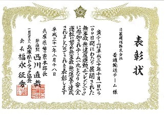 2017/11/24 「安全性優良事業所兵庫陸運部長表彰」を授与されました。
